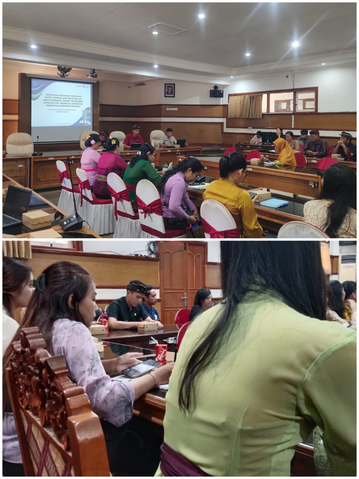 Pemerintah Kabupaten Buleleng melaksanakan sosialisasi Peraturan Bupati mengenai Tata Naskah Dinas serta Pengaturan Hari Kerja dan Jam Kerja di lingkungan Pemerintah Kabupaten Buleleng pada 12 Februari 2026. Kegiatan ini berlangsung di Ruang Rapat Gedung Unit IV Kantor Bupati Buleleng dan dihadiri oleh perwakilan dari seluruh perangkat daerah.