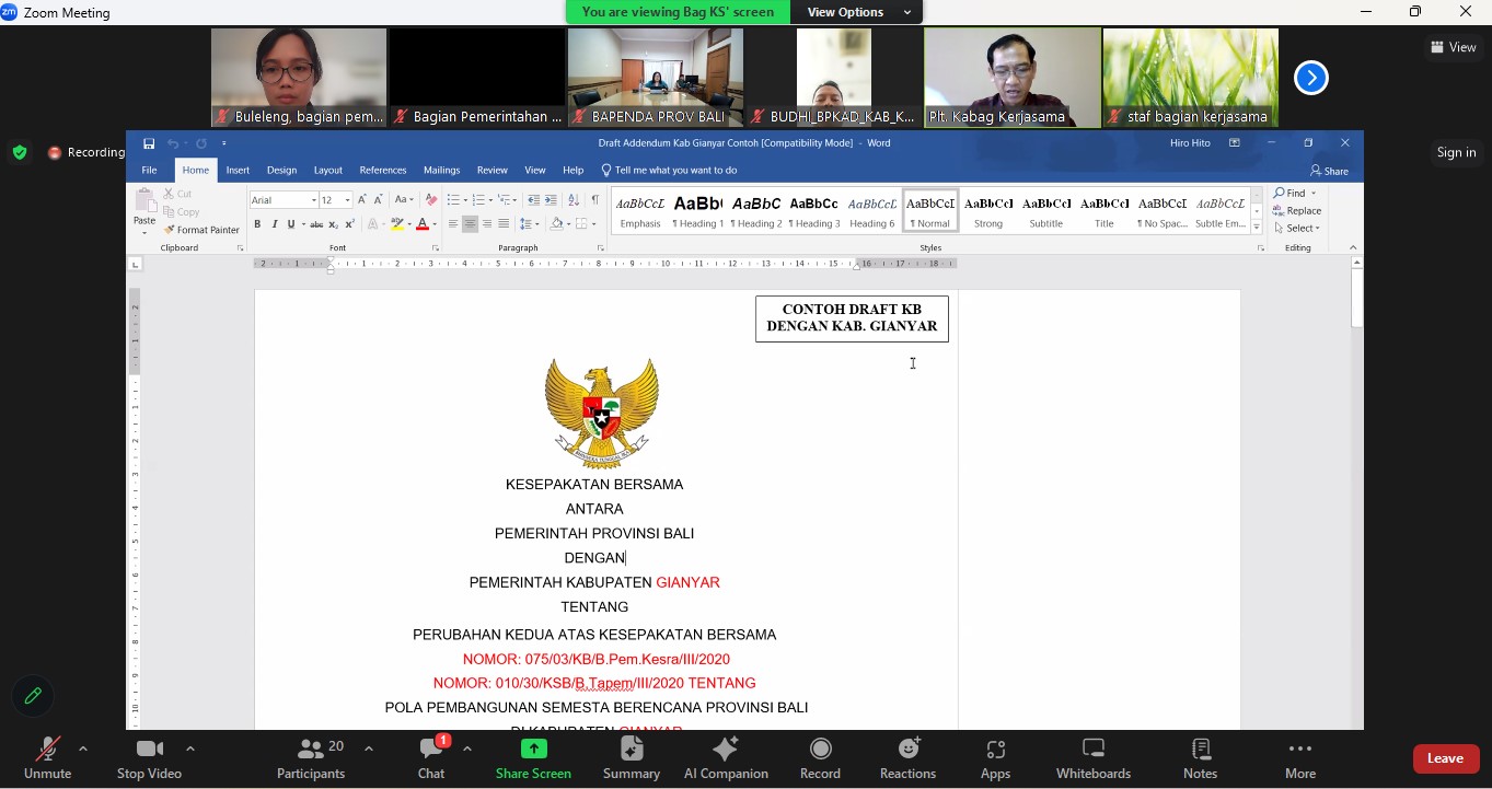 Bagian Kerja Sama Setda Provinsi Bali, dengan dihadiri oleh masing-masing