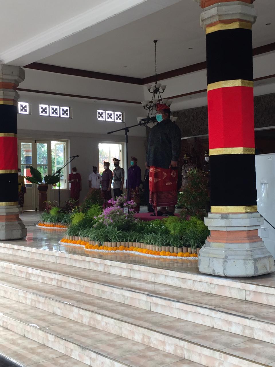 Pemerintah Kabupaten Buleleng tetap melaksanakan Upacara Peringatan Hari Ulang Tahun Ke-417 Kota Singaraja dengan mengikuti protokol kesehatan di Halaman Kantor Bupati Buleleng