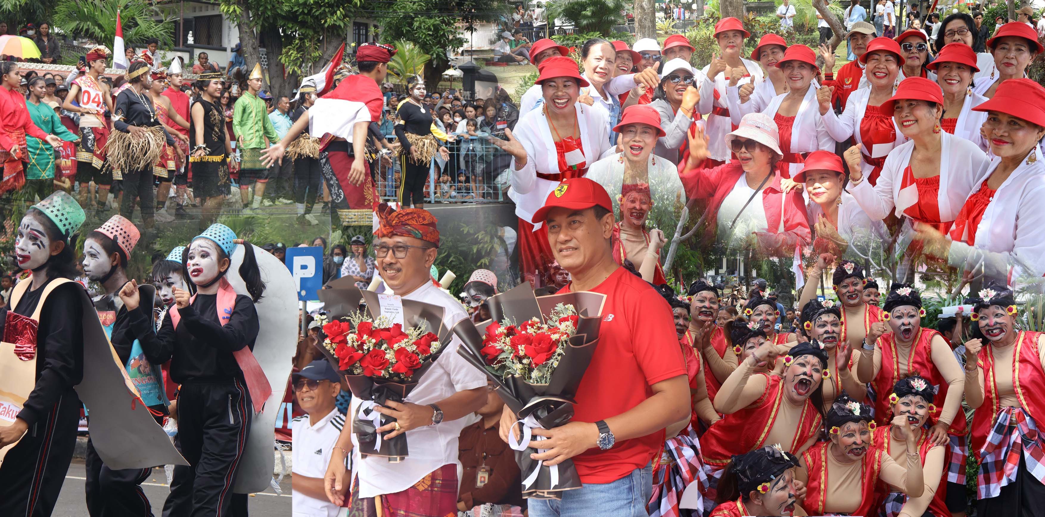 Buleleng – Suasana Kota Singaraja dipenuhi tawa dan antusiasme warga pada Kamis, 7 Agustus 2025, saat digelarnya Lomba Gerak Jalan Kocak dalam rangka memeriahkan HUT ke-80 Kemerdekaan Republik Indonesia. Kegiatan ini dilepas secara resmi oleh Wakil Bupati Buleleng, Gede Supriatna, didampingi Sekretaris Daerah Kabupaten Buleleng, Gede Suyasa, di kawasan Taman Kota Singaraja.
