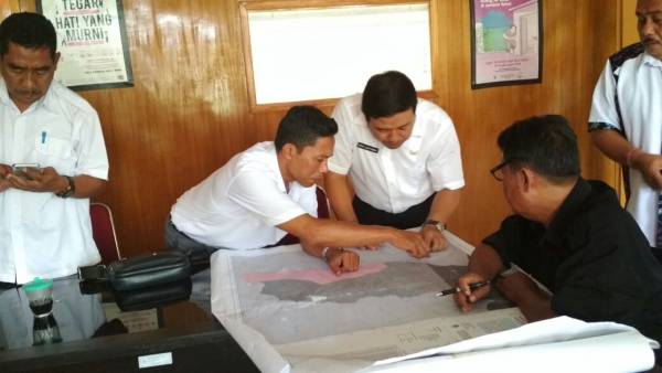 acara berlangsung dengan diskusi masing-masing Kepala Desa dan menemukan titik-titik kesepakatan di atas peta yang nantinya akan kembali dilakukan pelacakan ke lokasi dengan pengambilan titik koordinat untuk mengunci garis batas kemudian akan dilakukan penandatanganan berita acara kesepakatan.