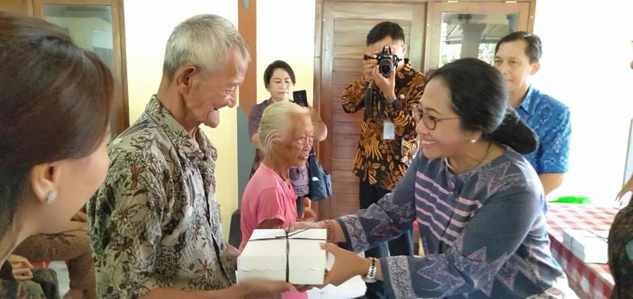 Usai berkunjung di RSUD, Ibu Aries Sujati Suradnyana beserta rombongan menuju ke Kaliuntu dan Kalibubuk guna menyerahkan sembako kepada para lansia. Sebanyak 80 buah paket sembako diserahkan kepada 40 lansia di Kaliuntu dan 40 lansia di Kalibubuk.