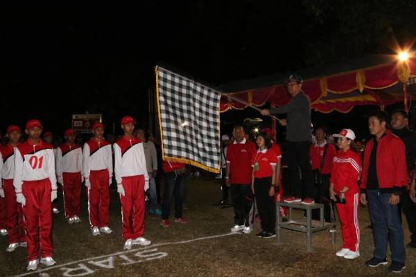 Selanjutnya, Wakil Bupati Buleleng melepas secara resmi Lomba Gerak Jalan Dewasa Putra 45 KM Tahun 2018 yang ditandai dengan pengibaran bendera start.